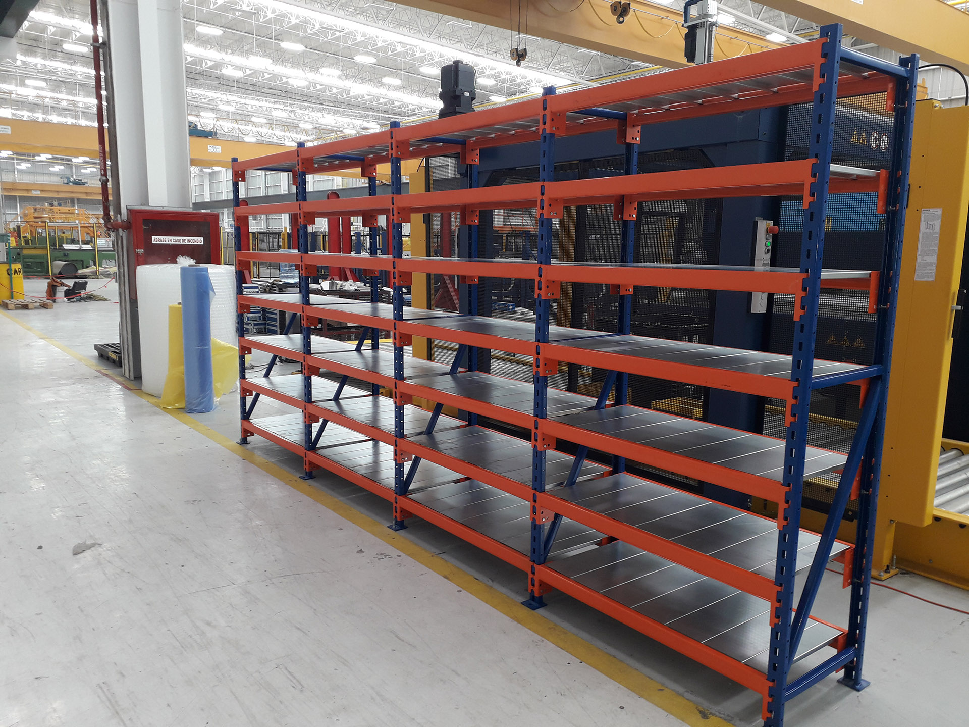 Es un estante de ángulo ranurado con perforaciones y entrepaños metálicos atornillados a los ángulos que forman los niveles de la estantería. Son utilizados para almacén con mercancías de poco peso.
